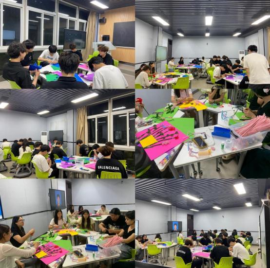 心理沙龙以创意手工制作为核心环节。现场准备了彩色卡纸、彩泥、毛线等丰富材料,在轻柔舒缓的音乐氛围中,同学们自由选取材料,全心投入折纸、拼贴与塑形等创作过程。随着指尖的翻折与组合,平凡的纸张渐渐化为绽放的花朵、生动的动物或充满个性的抽象图案。这一刻,大家暂时远离课业与生活的压力,进入专注而平静的“心流”状态——这种全神贯注的体验,本身即是有效的心理舒缓。