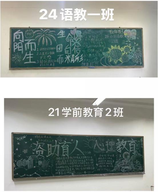为深入推动心理健康教育,营造积极阳光的校园文化氛围,引导学生培养乐观向上、坚韧进取的人生态度,2025年6月9日,周口职业技术学院五年制大专部组织开展“向阳携行,心绽芳华”心理健康主题黑板报评比活动。本次活动作为大学生心理健康节活动月的重要组成部分,旨在通过创意表达与视觉艺术形式,传递心理健康正能量,鼓励学生在创作与欣赏中获得心灵滋养。
