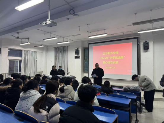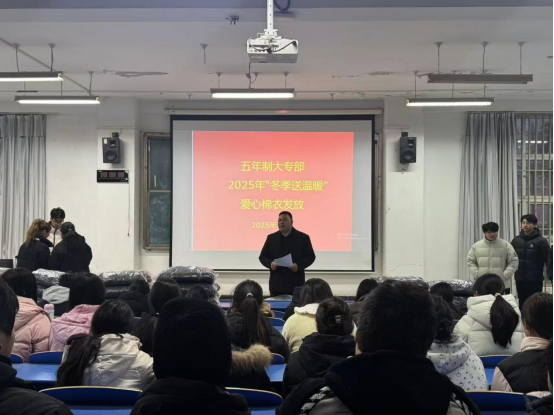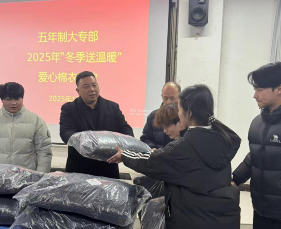 为深入贯彻国家学生资助政策,精准帮扶家庭经济困难学生,助力他们温暖过冬,12月8日下午,五年制大专部举办了“冬季送温暖”爱心棉衣发放仪式。仪式由五年制大专部党总支书记张建刚主持,副主任闻杰、学管办主任王铮及资助专员种尘妍老师共同参加。